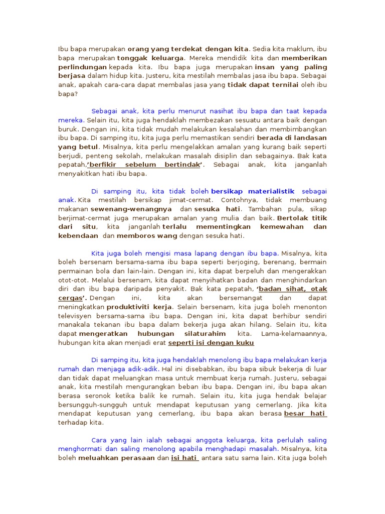 Contoh Karangan Cara Cara Menghargai Jasa Bu Bapa Pdf